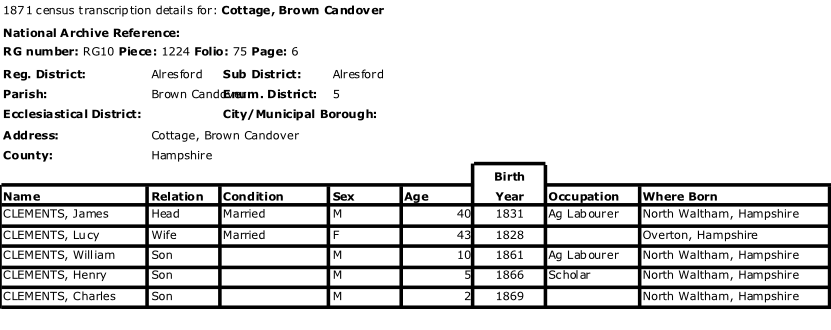 More background on William Clements, now aged 10 the father of Louisa Clements who eventually becomes the wife of Maurice’s youngest son, Gerald Walsh.