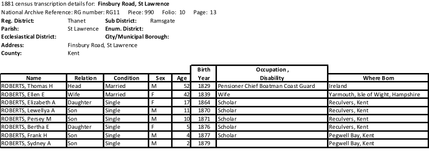 Ellen, Maurice’s eldest sister now with 3 more children since the last census and her husband retired at 52 years old.