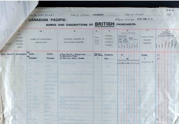 1927 Gerald returns from Canada with wife and boys on ship S S Minnedosa