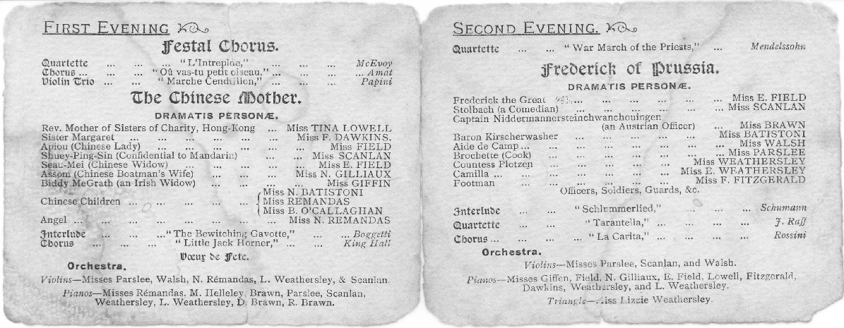 1897 February Ellen & Annie Music program from Notre Dame Convent